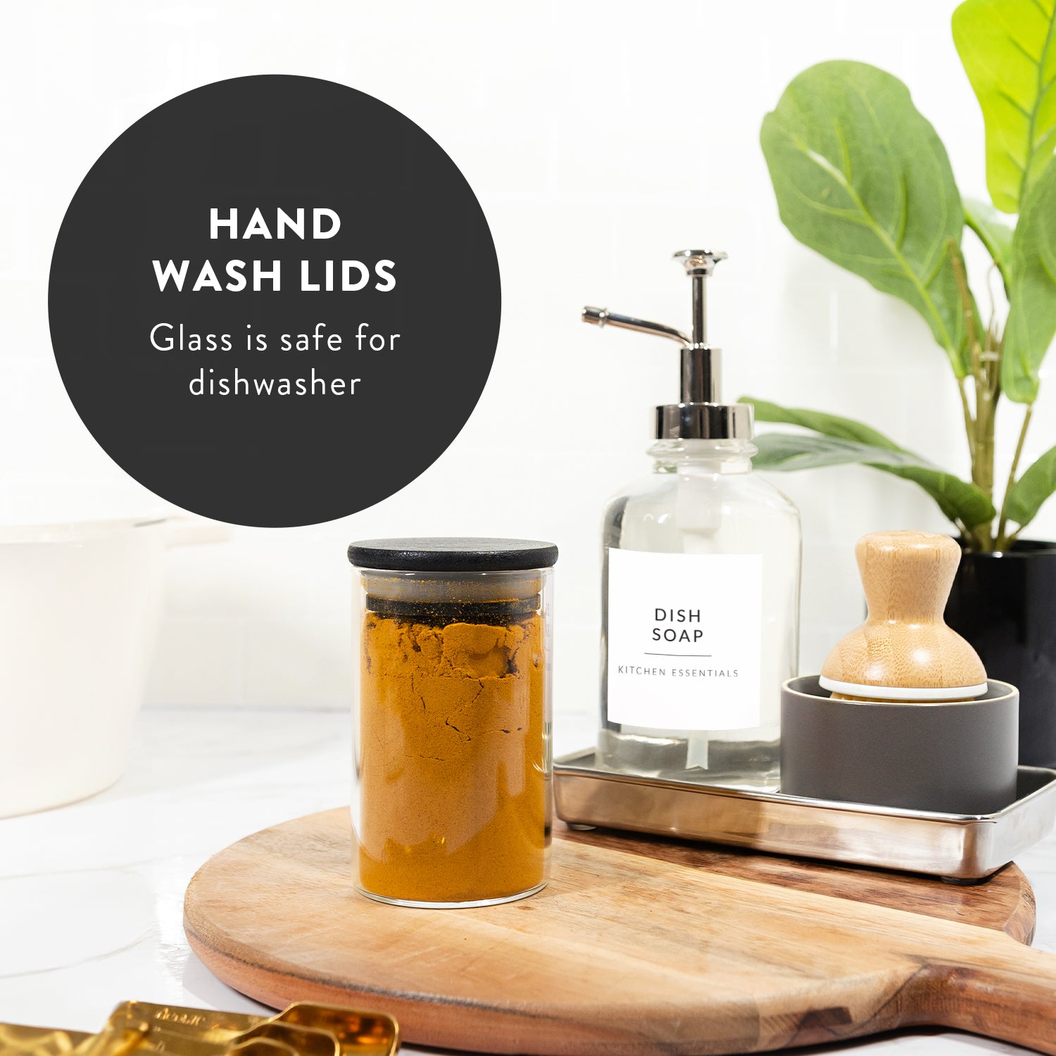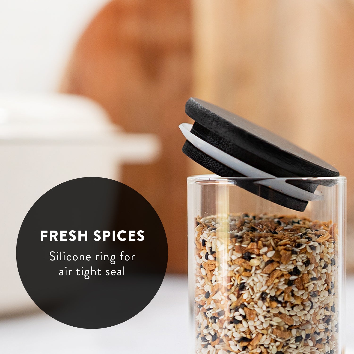 Glass Spice Jars with Black Bamboo Lids - 12 PACK